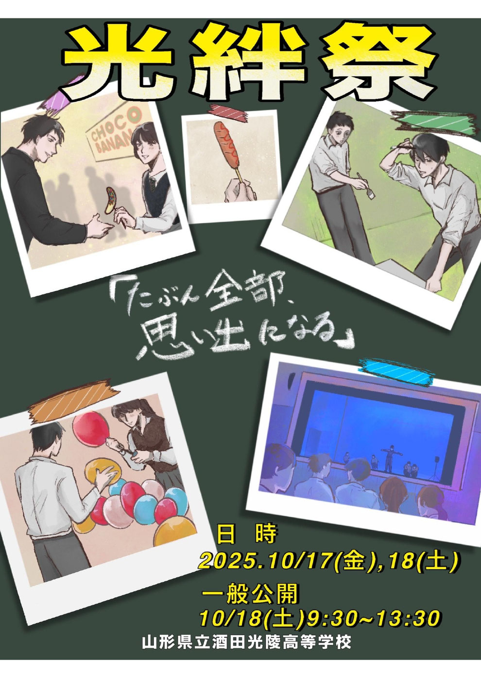 酒田光陵高校の学校祭、『光絆祭』が10月17日(金)・18日(土)に開催されます。その内18日(土)の9:30~13:30までが一般公開となります。